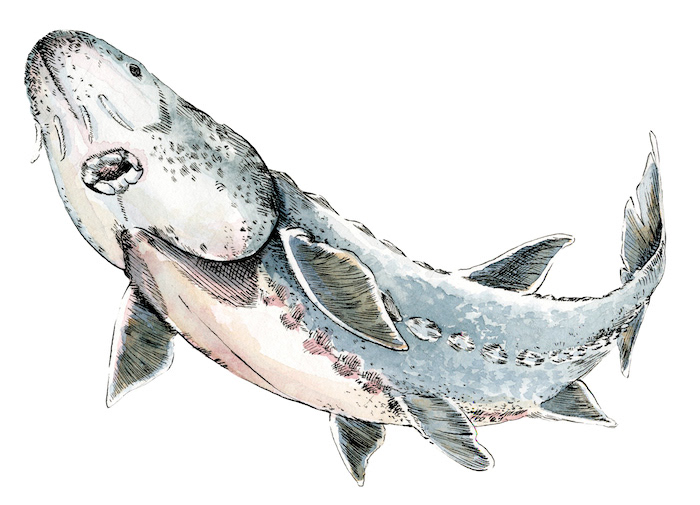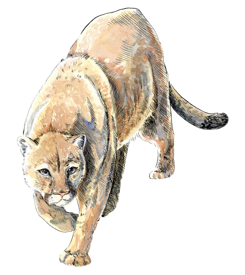 A series of ink and watercolor paintings for What's Up! Magazine of extinct and endangered species. From top to bottom: Astrodon, Carolina Parakeet, Eastern Cougar, Atlantic Sturgeon, and the Heath Hen.