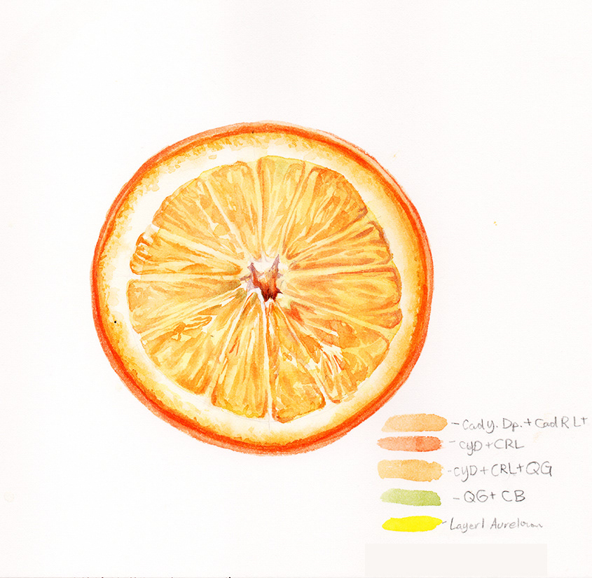 Sketchbook practice of a plum, a kiwi, and an orange.