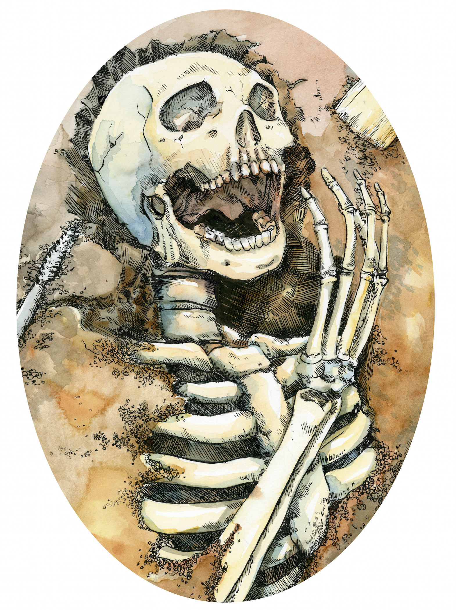 An image for an article on the science of yawning, and its ramifications for our understanding of early homo sapiens. Done in ink and watercolor.